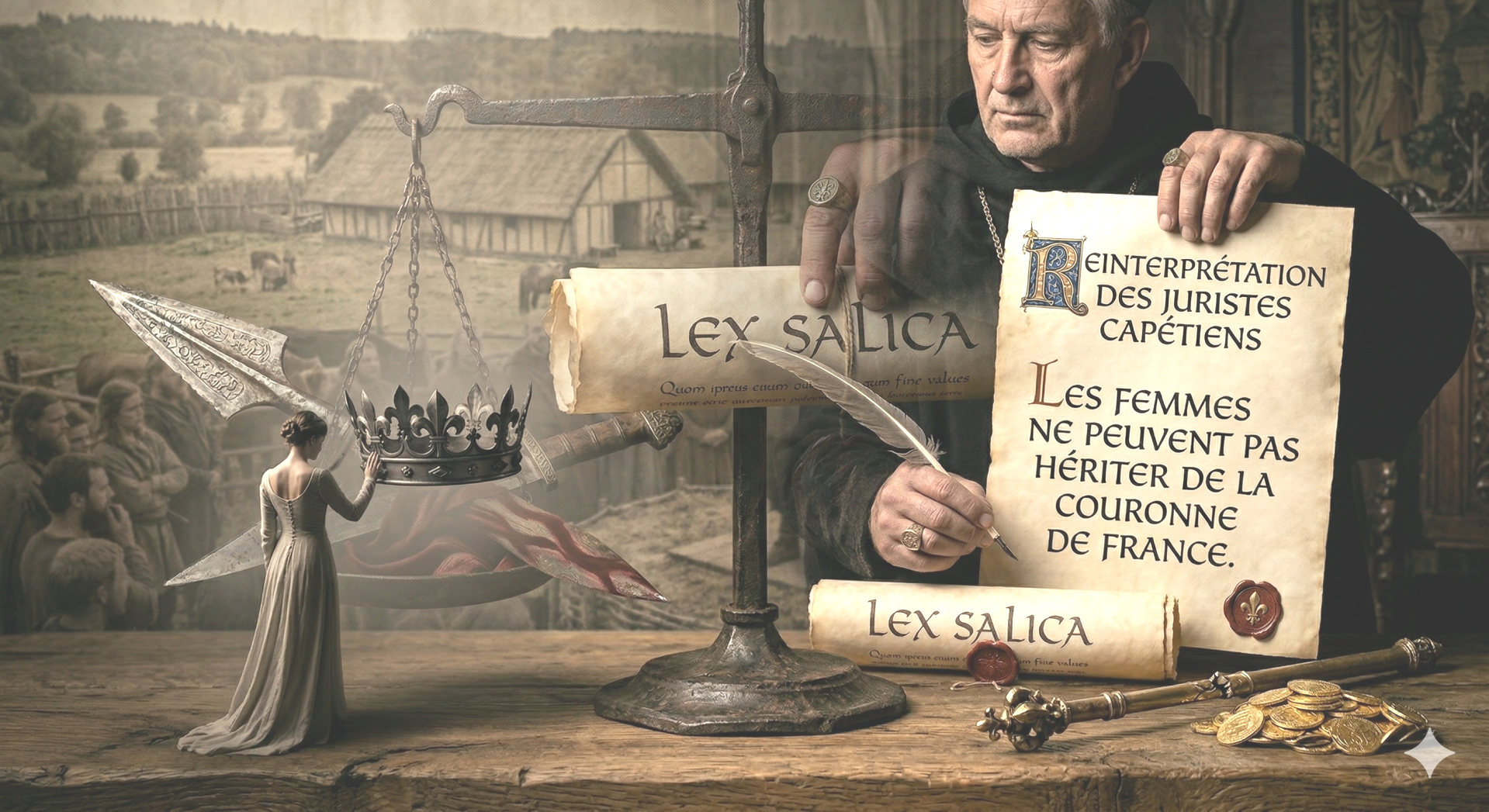Ce n’est qu’au XIVᵉ siècle que cette loi est détournée de son sens initial. Les juristes capétiens la réinterprètent pour en faire une règle de succession au trône, affirmant que « les femmes ne peuvent pas hériter de la couronne de France ».
